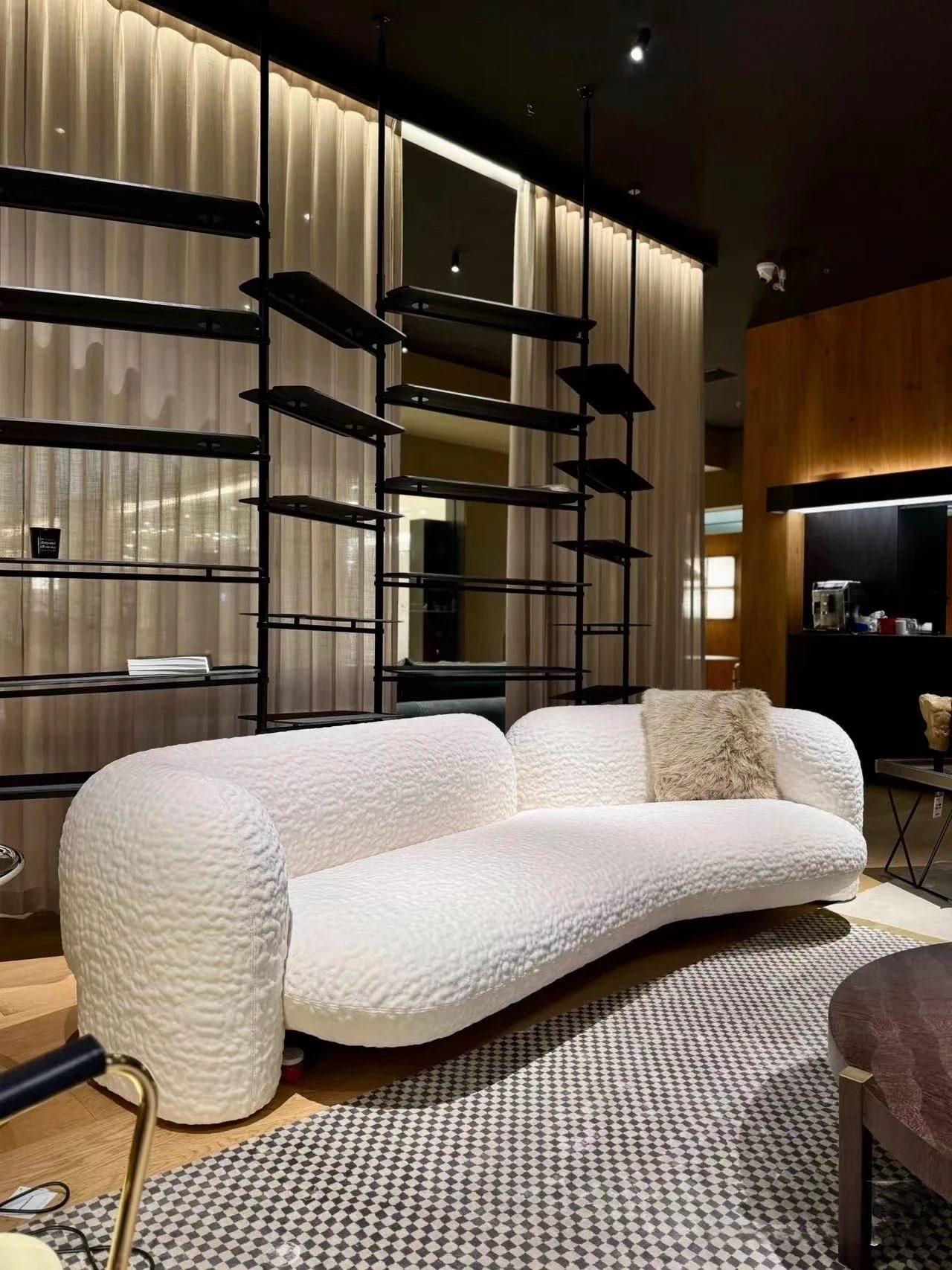 Ce canapé modulable au style minimaliste moderne est la pièce maîtresse parfaite pour votre salon. Son design en forme d’arc apporte une touche d’élégance et de douceur à votre espace de vie. Le canapé est recouvert d’un tissu en laine d’agneau (Lamb wool), offrant une sensation de confort et de luxe au toucher.