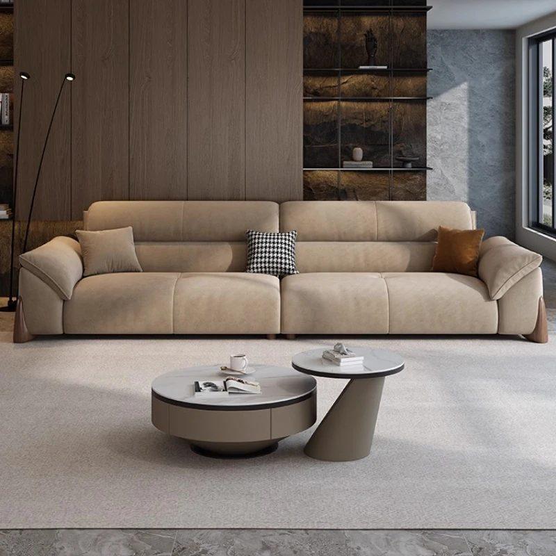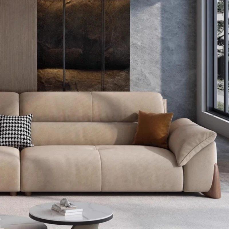 Un canapé au style minimaliste italien, conçu pour le luxe et le confort. Son rembourrage moelleux et sa structure en bois massif offrent une expérience de relaxation inégalée.