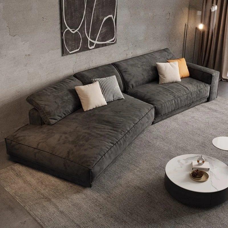 Canapé en flanelle au design minimaliste et scandinave. Sa structure solide et ses dossiers ajustables en font le choix idéal pour un confort personnalisé.