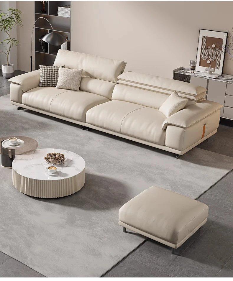 Ce canapé en cuir véritable offre un confort exceptionnel et un soutien optimal grâce à son design ergonomique et à ses appuis-tête réglables. Son rembourrage en duvet, ainsi que ses pieds en acier au carbone, en font une pièce à la fois luxueuse, durable et facile d’entretien.