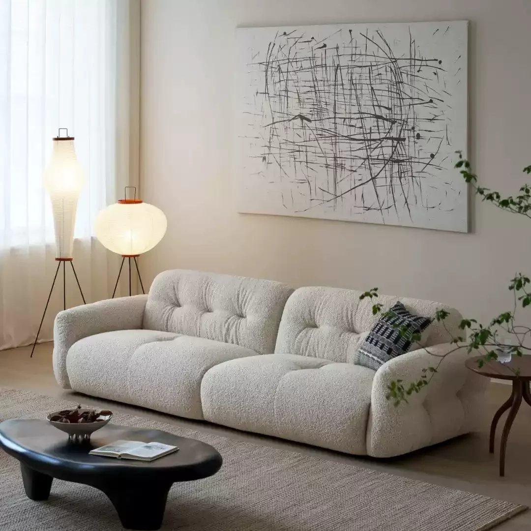 Ce canapé scandinave moderne et élégant est doté d’une structure en bois de mélèze et d’un rembourrage en mousse à haute résilience. Parfaitement adapté aux grands espaces, il se transforme facilement en un couchage confortable.