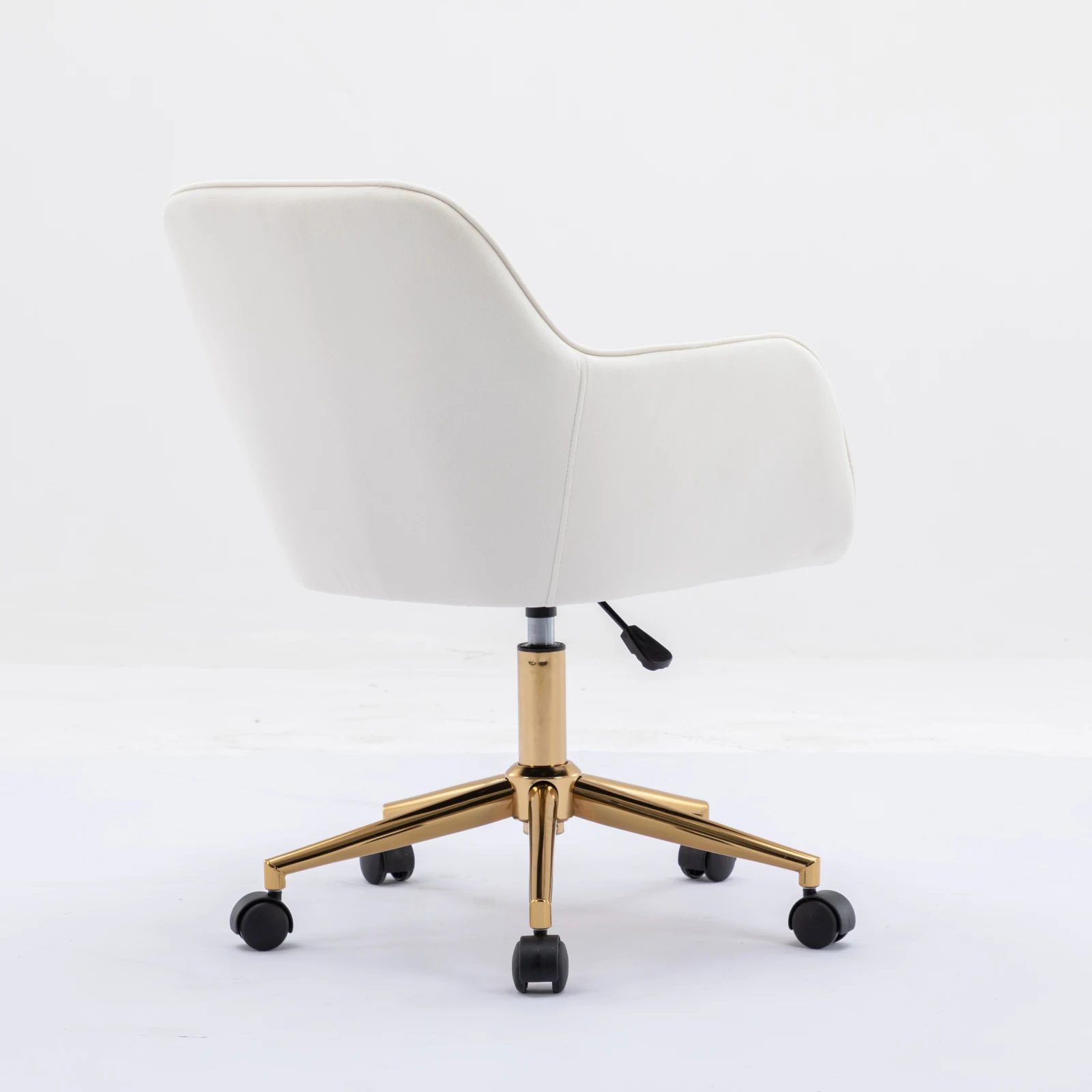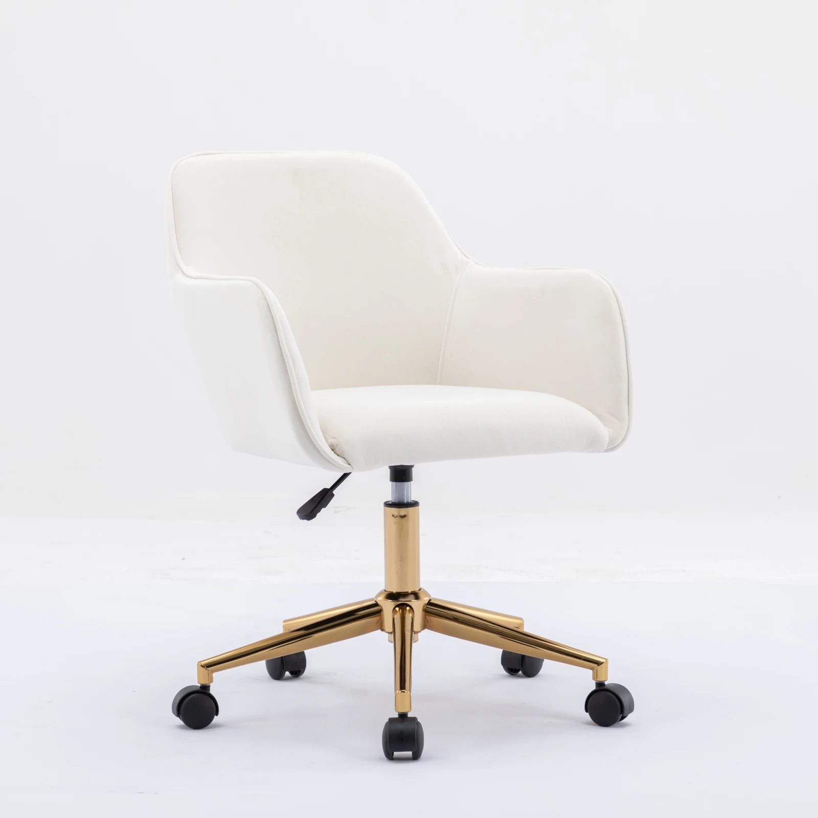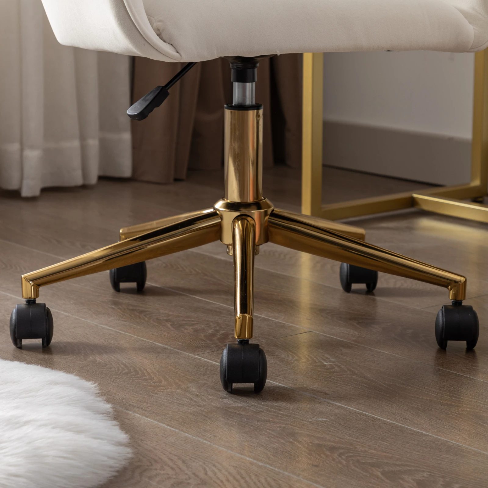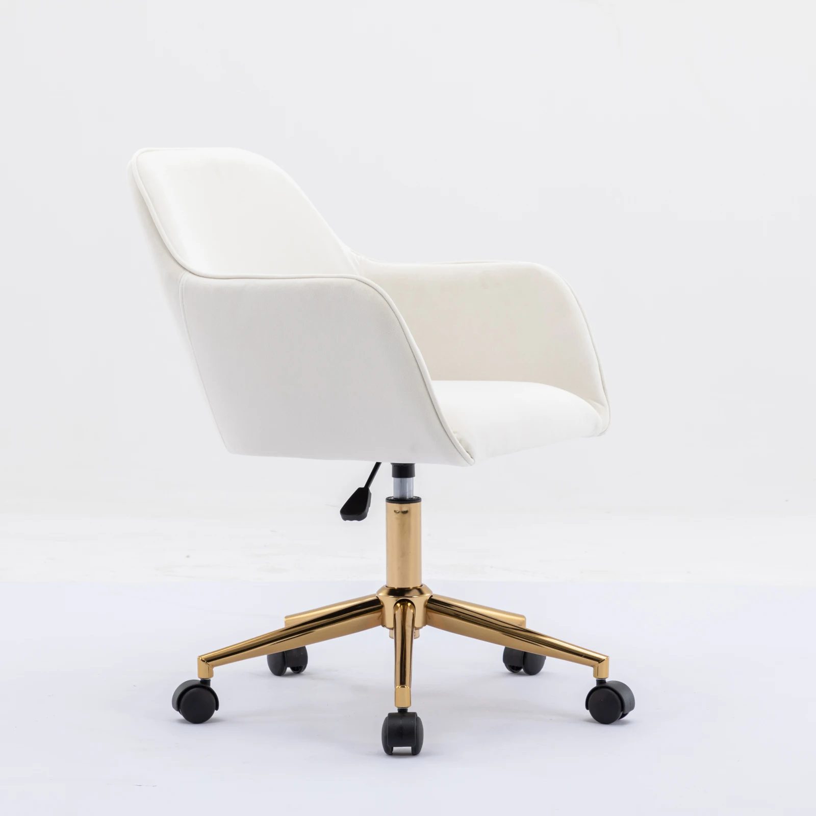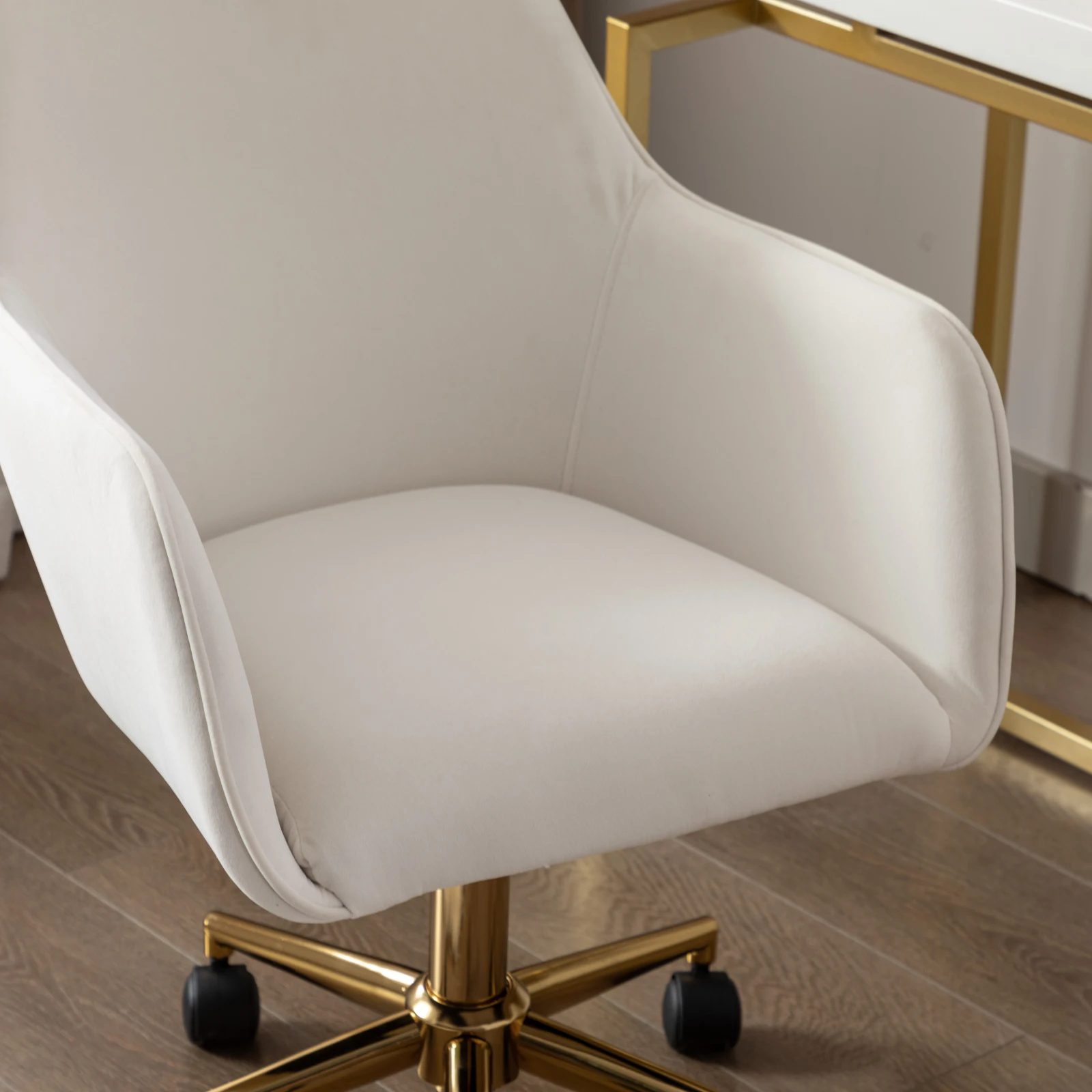 Chaise de bureau est un mélange parfait de confort et de style, avec son revêtement en velours doux et sa base en métal doré. Il est réglable en hauteur et pivote à 360°, ce qui en fait un ajout pratique et élégant à votre espace de travail.