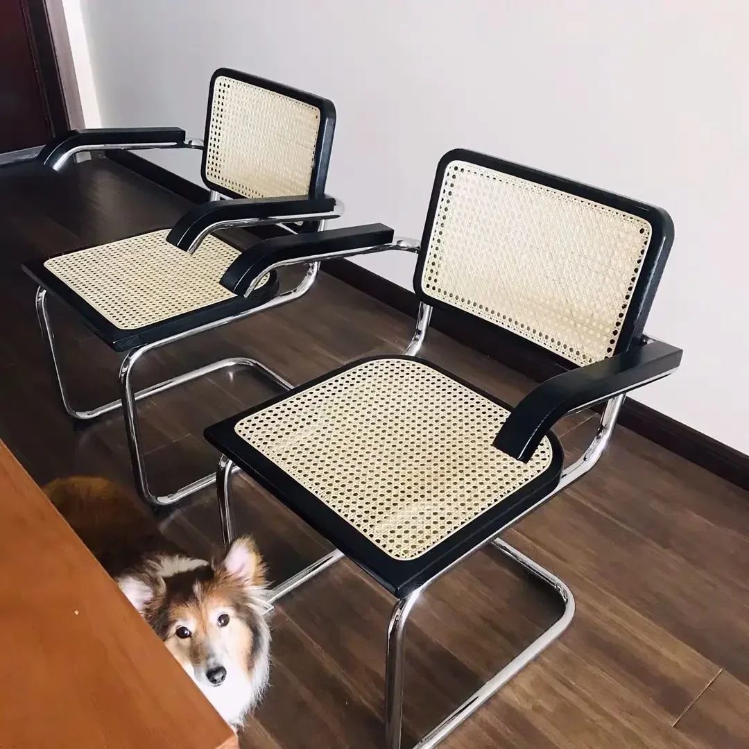 Chaise de salle à manger Nordique/Médiévale au style moderne, fabriquée avec un cadre en bois de frêne massif et un tressage en rotin naturel. Son design artisanal intemporel et son confort en font un ajout polyvalent et durable.