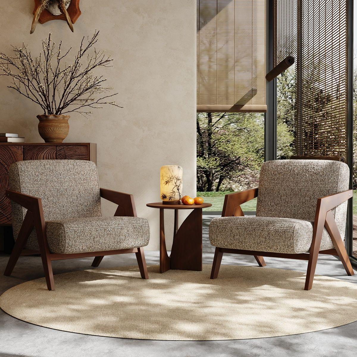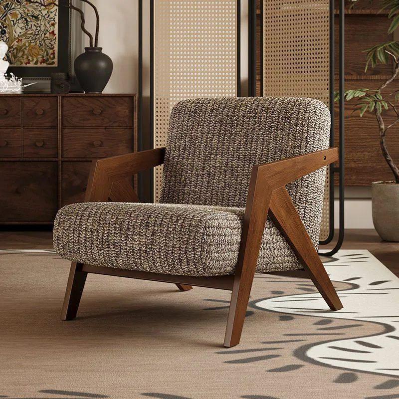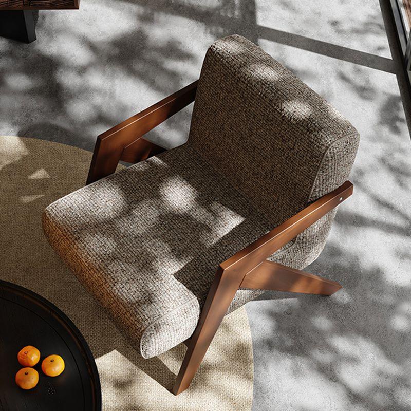 Ce fauteuil se distingue par son design moderne et ses lignes épurées. Sa structure en bois massif lui confère une solidité et une stabilité à toute épreuve, tandis que son revêtement en lin de coton apporte une touche naturelle et un grand confort. La couleur brune unie du tissu s’harmonise parfaitement avec les teintes du bois, créant une ambiance chaleureuse et apaisante.