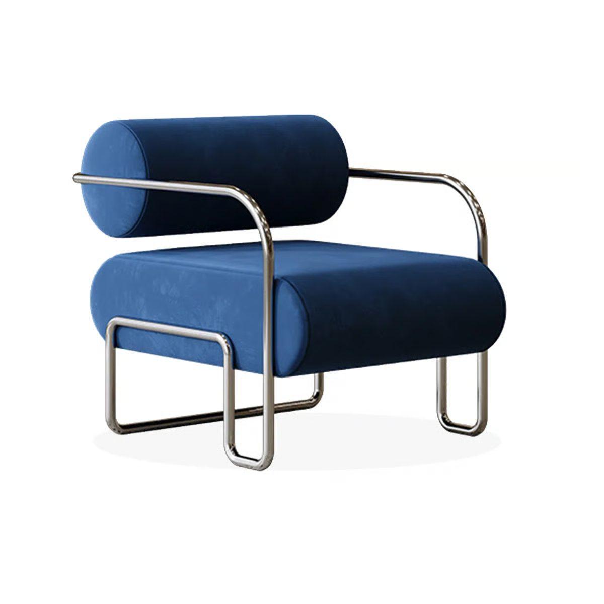 Ce fauteuil se distingue par son design unique et audacieux. Son cadre en métal chromé et son rembourrage en velours bleu profond créent une pièce à la fois moderne et luxueuse. Conçu pour le confort et le style, il est la pièce maîtresse idéale pour un salon ou un coin lecture.