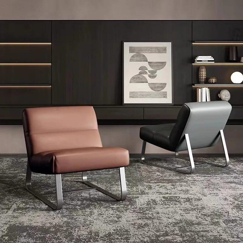 Ce fauteuil allie un design moderne et un confort exceptionnel. Son revêtement en cuir microfibre et son rembourrage en mousse haute densité reposent sur des pieds en acier inoxydable, créant une pièce à la fois chic et durable. Il est disponible en gris et en marron pour s’adapter à votre style.