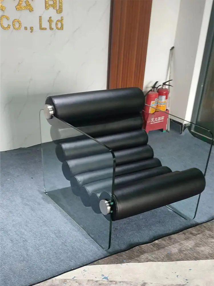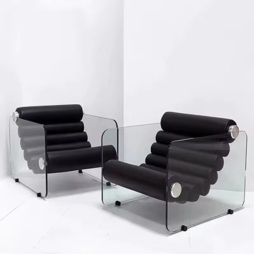 Ce fauteuil au style minimaliste est doté d’une assise en cuir microfibre noir et d’un cadre transparent pour un look unique. Son design audacieux et simple en fait une pièce maîtresse pour tout intérieur moderne.