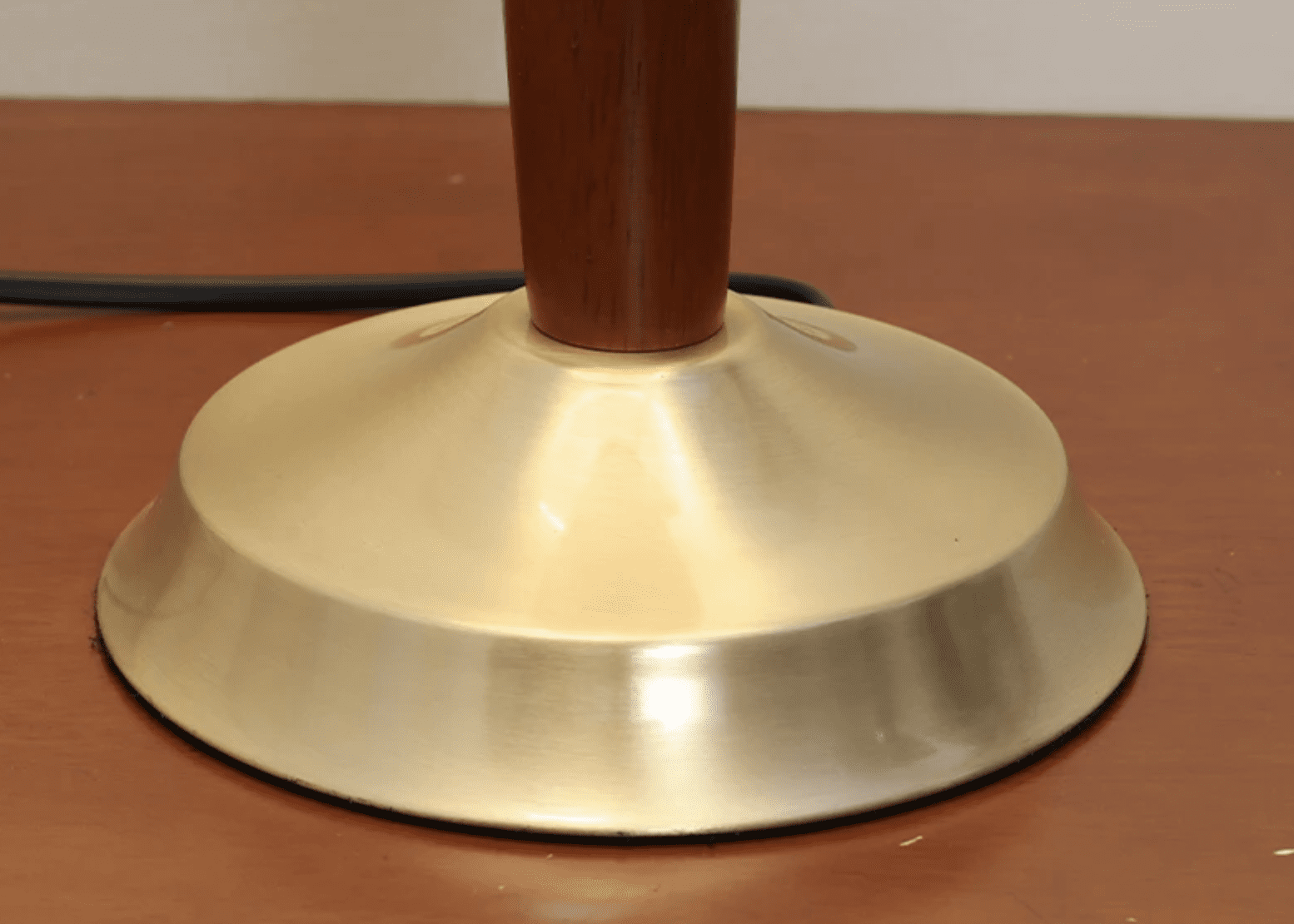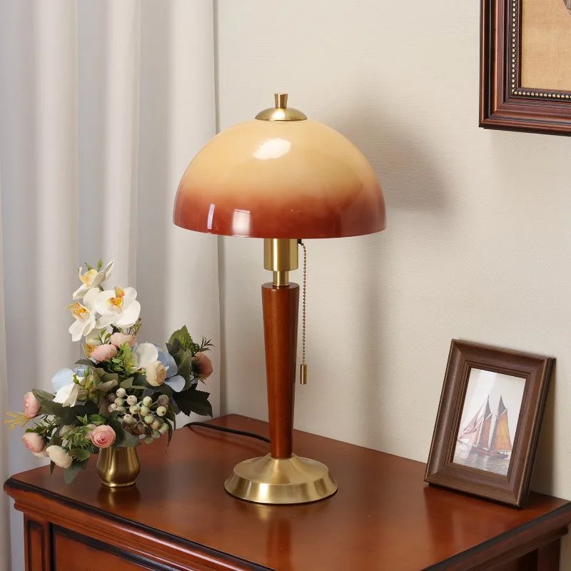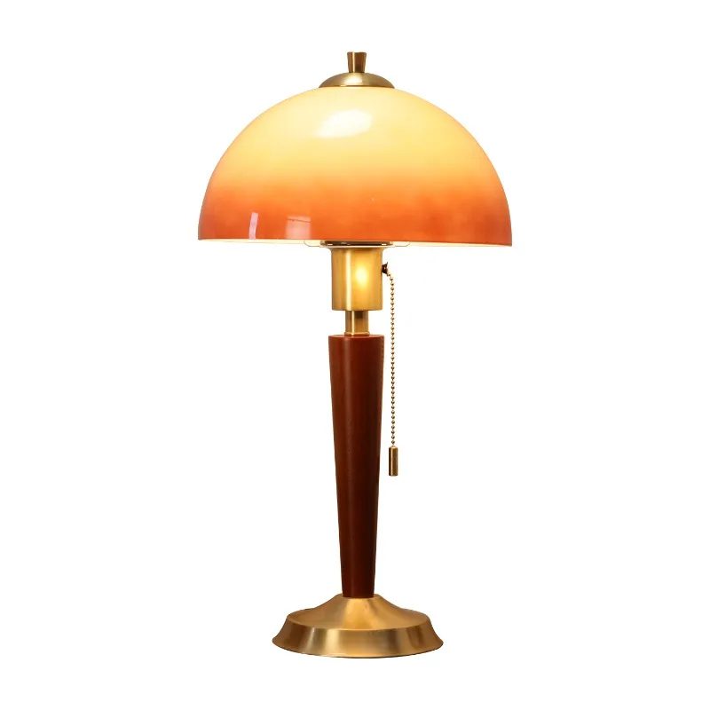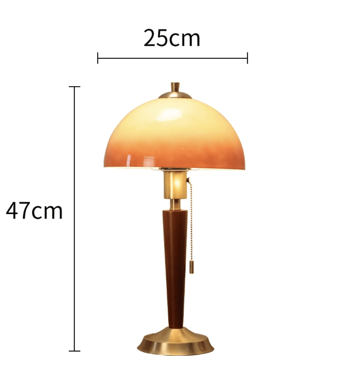 Lampe de table Contemporain inspiré du Bauhaus Vintage, caractérisé par un abat-jour en Verre Teinté avec un dégradé de couleurs chaudes. Sa base et son mât en Bois et Métal sont idéaux pour un éclairage d’ambiance intime.