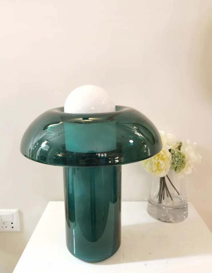 La lampe de table se positionne comme un luminaire au design Nordique, apportant une touche de luxe discret à votre intérieur. Sa structure est composée principalement de Verre, avec un abat-jour en Verre Teinté de forme Tambour. La finition est en Fer, obtenue par une technique de teinture unie.
