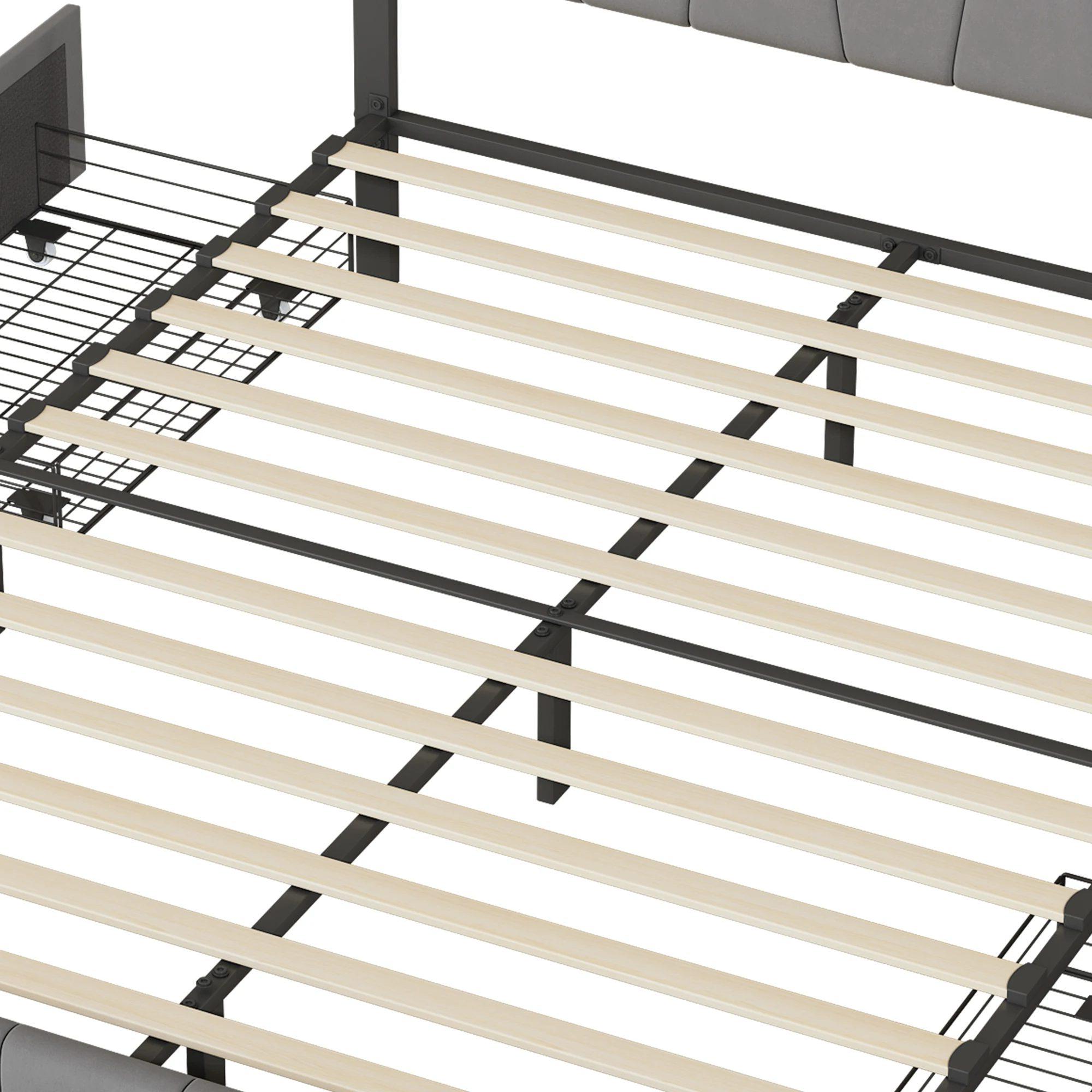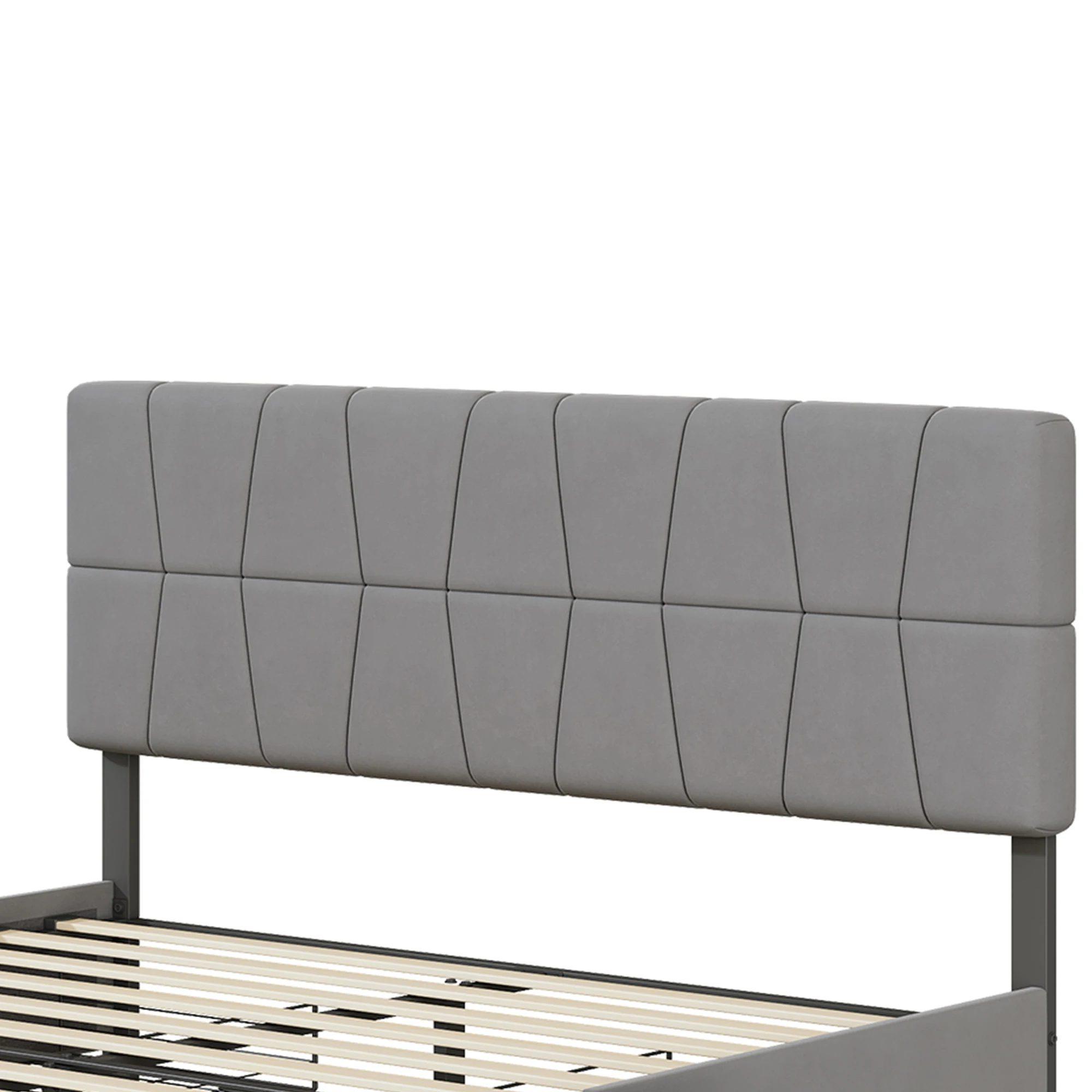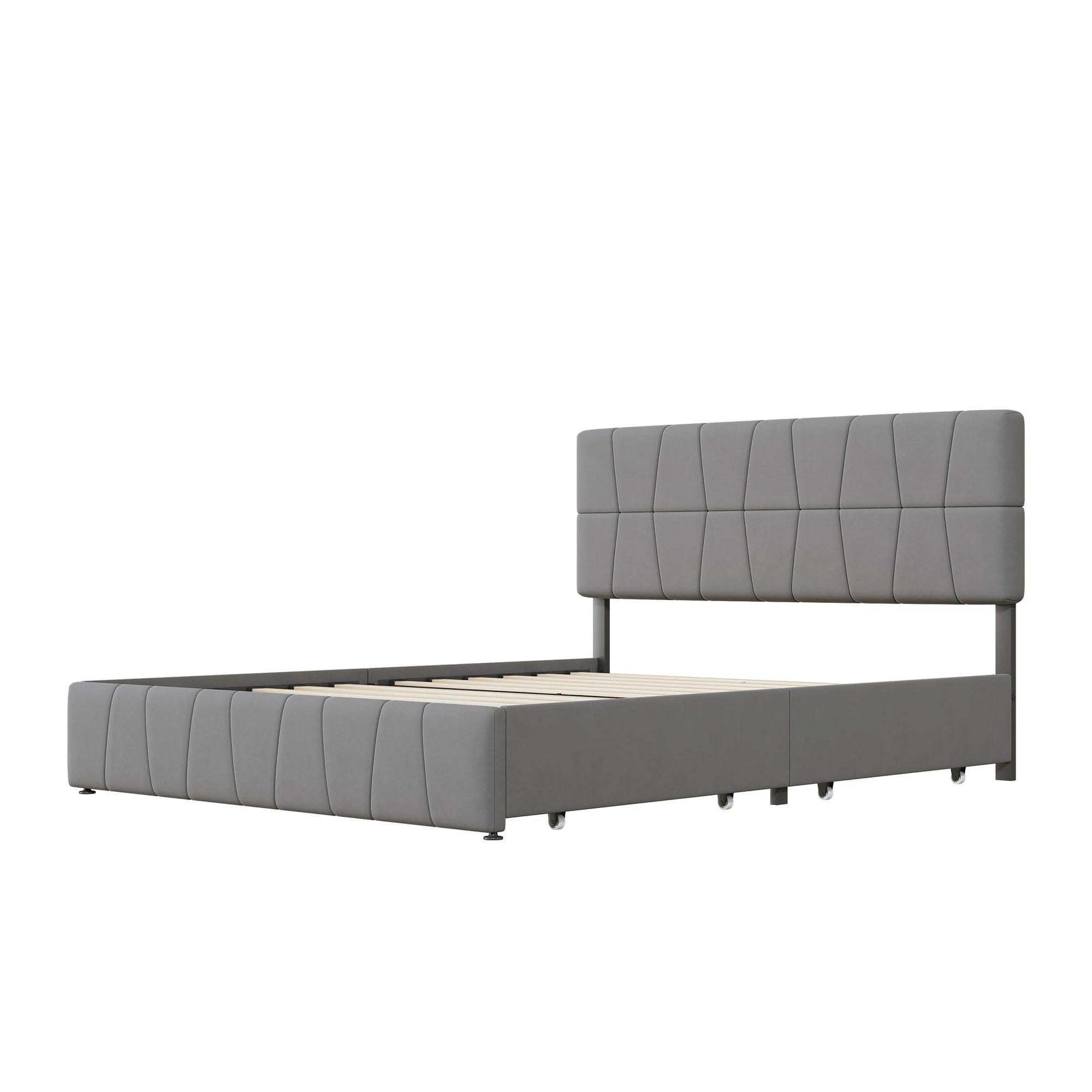Ce lit capitonné en velours gris est à la fois moderne et fonctionnel. Il est équipé de quatre tiroirs de rangement pour optimiser l’espace. La tête de lit réglable et le design ergonomique garantissent un confort de sommeil supérieur.