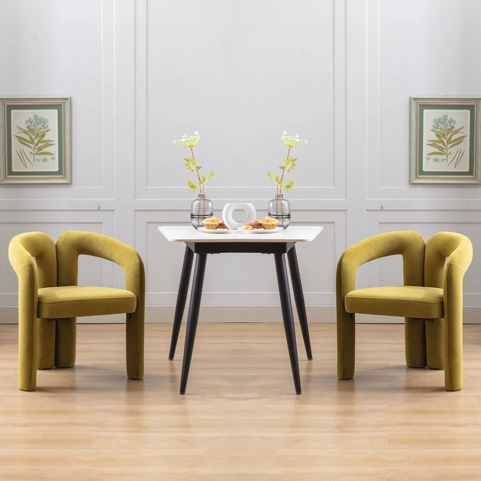 Lot de 2 chaises au design Nordique Moderne et stylé. Le revêtement en velours doux et le rembourrage en mousse offrent un excellent confort. Reposant sur des pieds en métal robustes.