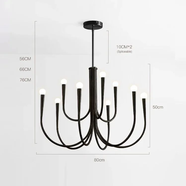 Ce Lustre LED incarne le meilleur du style moderne nordique. Sa structure est composée d’un corps en Fer au fini Or (également disponible en Noir) et de huit bras courbés, rappelant des cornes ou des tiges végétales. Chaque bras est surmonté d’une douille qui contient un abat-jour en Verre Clair, dirigeant la lumière vers le bas.