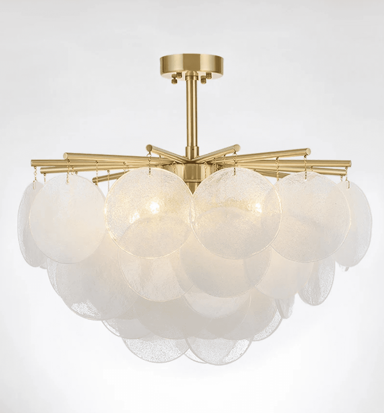 Le lustre est une pièce de luxe qui allie le minimalisme Nordique à l’opulence du verre et du métal. Sa structure en Fer bénéficie d’une finition par galvanoplastie pour un aspect poli et brillant doré, créant un contraste sophistiqué avec les éléments lumineux en Verre.