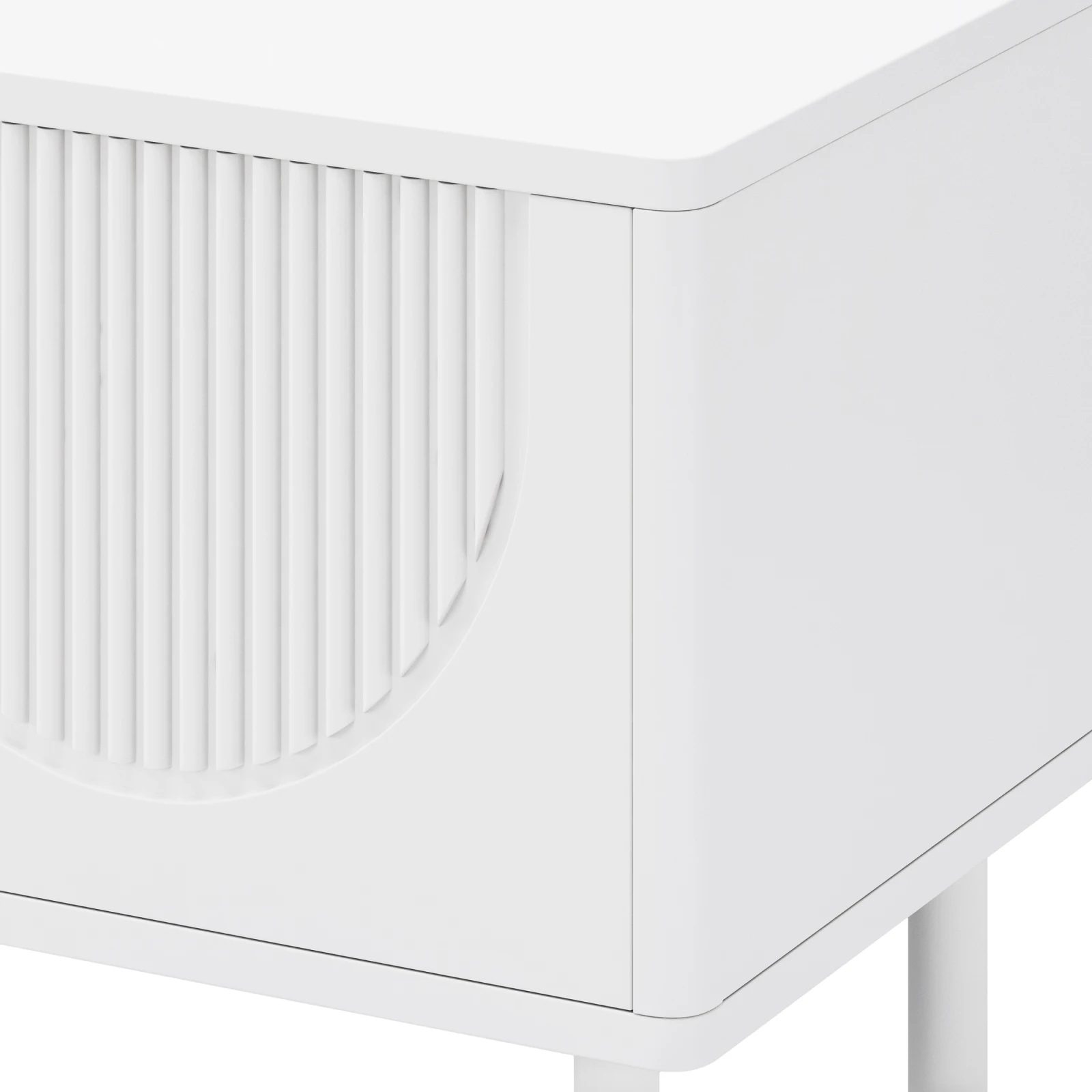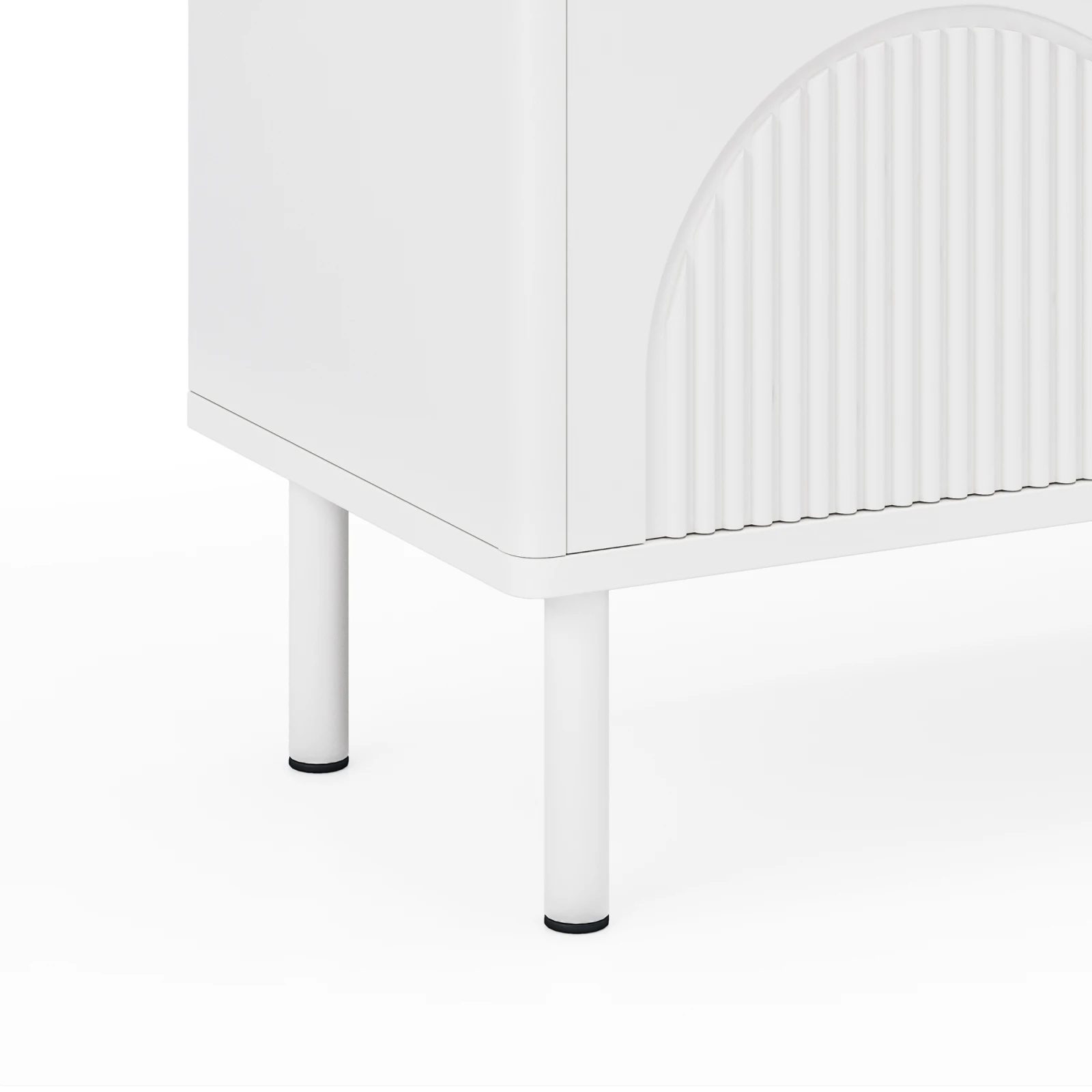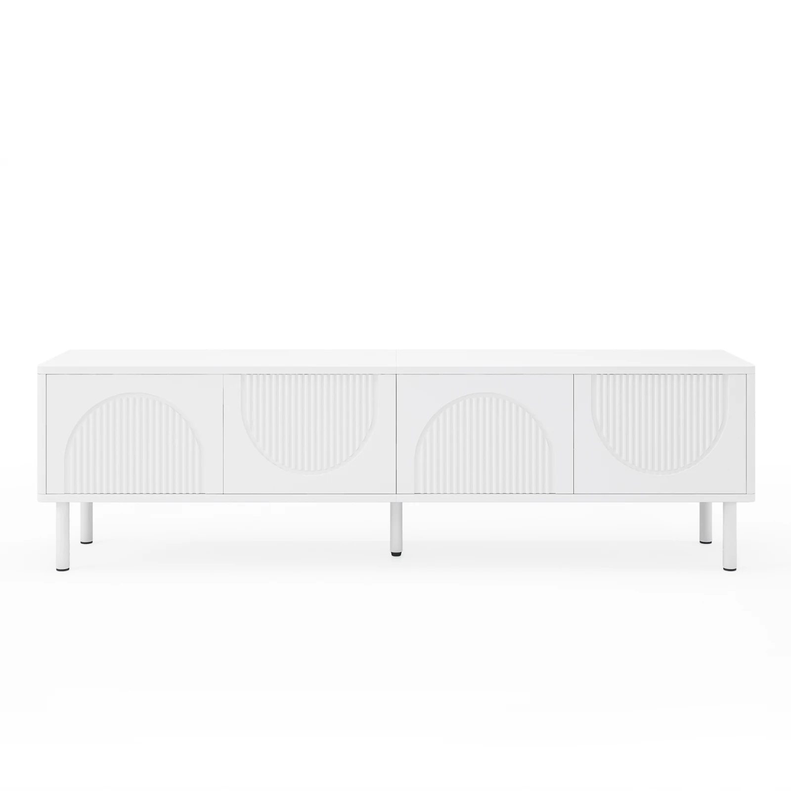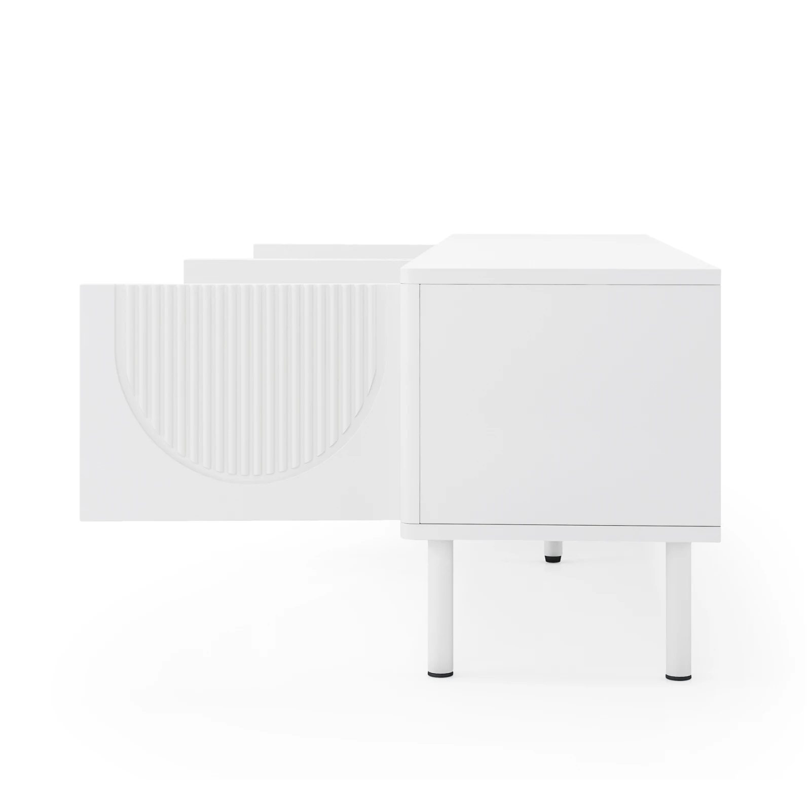Ce meuble TV apporte style et ordre à votre intérieur. Sa surface entièrement mate d’un blanc pur crée une atmosphère paisible et évite les reflets, s’adaptant aussi bien aux styles minimalistes, modernes ou Wabi-Sabi. L’élément le plus distinctif est ses portes ornées de reliefs en forme de croissant de lune, qui ajoutent une texture artistique et un caractère unique.