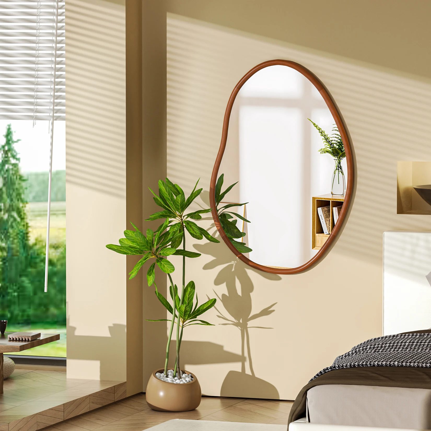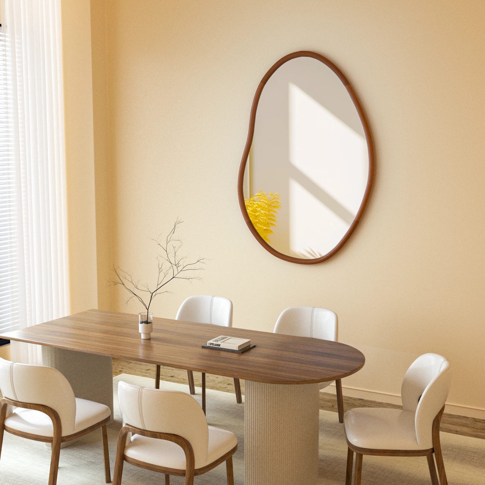Ce miroir mural est une pièce décorative moderne qui rompt avec les lignes traditionnelles. Sa forme asymétrique et organique apporte une touche de douceur et de modernité à votre intérieur.
