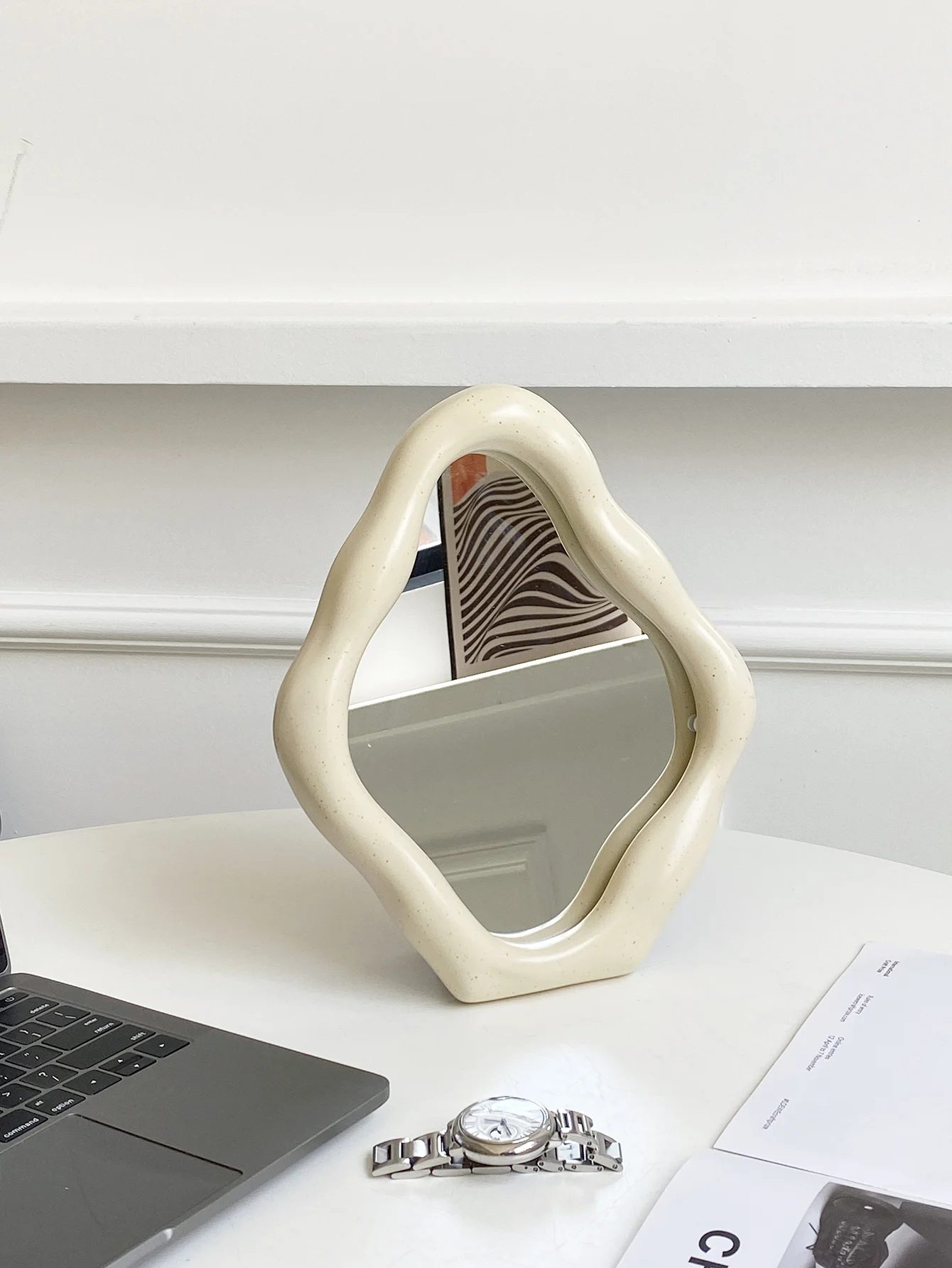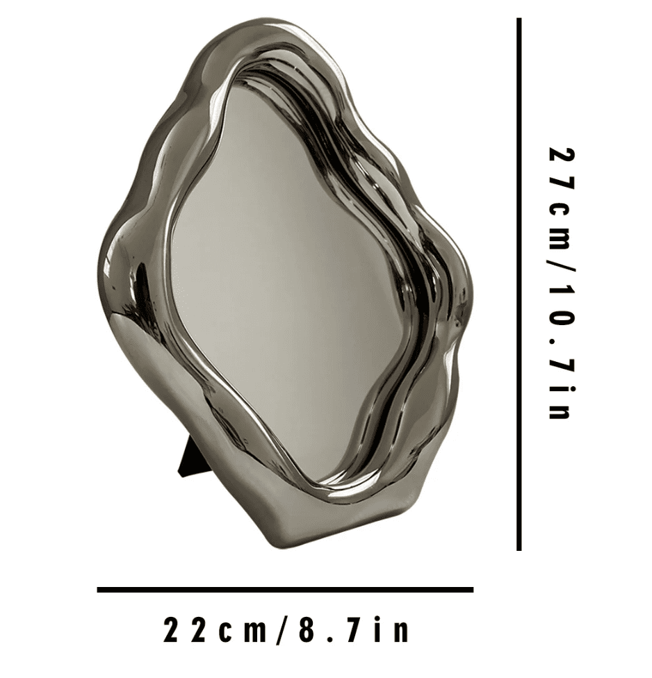 Miroir décoratif sur pied de style Ins, au design atmosphérique haut de gamme. Son cadre est fabriqué en Céramique avec une finition obtenue par galvanoplastie et cuisson d’émail à haute température.