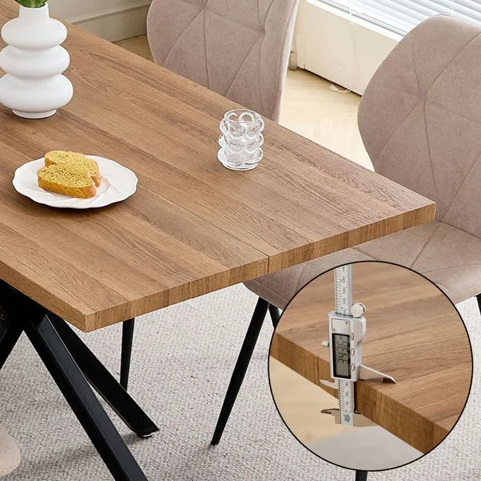 Les pieds en métal noir ajoutent une touche industrielle et garantissent une stabilité et une solidité remarquables. Grâce à leur conception géométrique, ils apportent une touche artistique moderne et s’intègrent à différents styles de décoration. Cette table peut être utilisée comme table de salle à manger pour accueillir famille et amis, ou comme bureau pour travailler, s’adaptant à de multiples scénarios d’utilisation.
