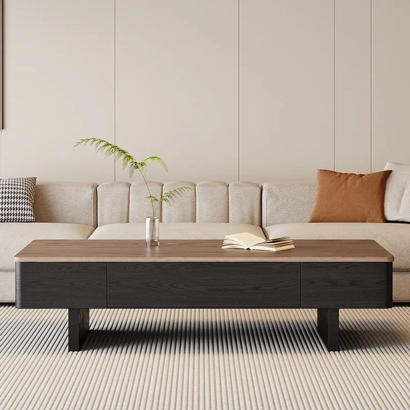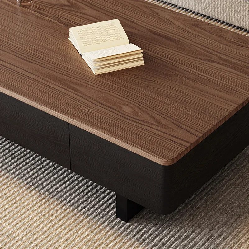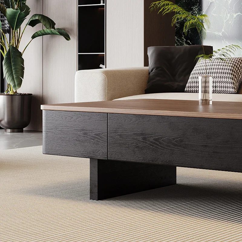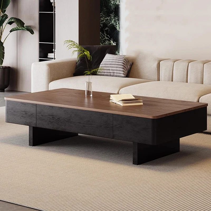 Cette table basse rectangulaire haut de gamme allie un design moderne à une fonctionnalité intelligente. Son plateau est fabriqué à partir de bois massif et manufacturé de couleur noyer, tandis que sa base est en fer avec une finition cuite à haute température pour une durabilité accrue et une résistance à la rouille. Le large plateau offre un espace généreux pour vos objets quotidiens et est facile à nettoyer.