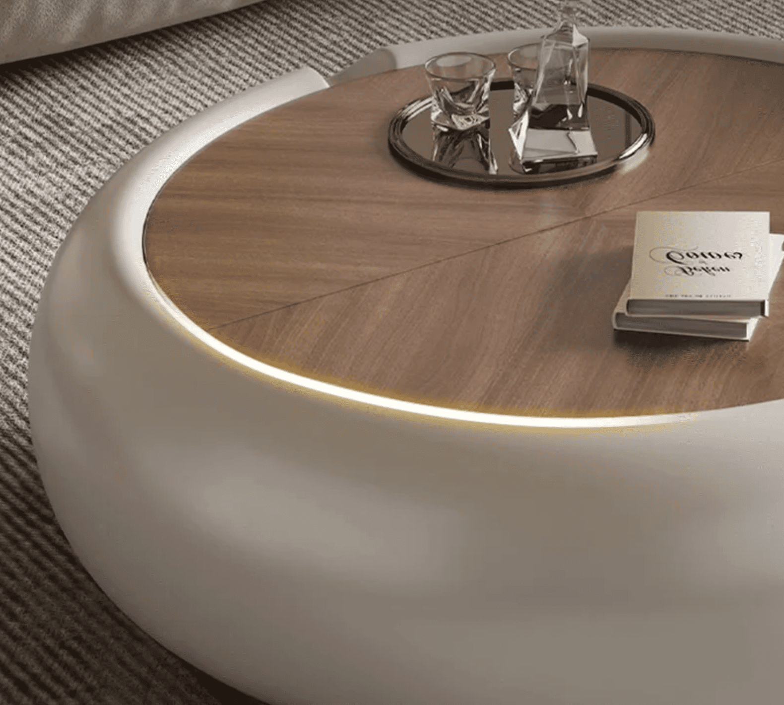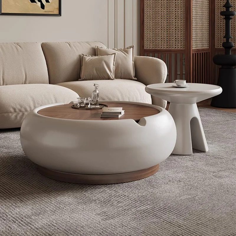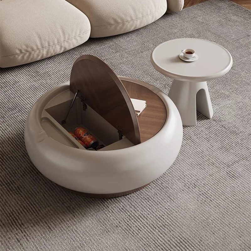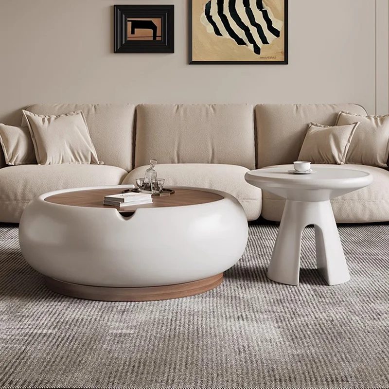 Cet ensemble de tables basses modernes associe blanc et bois avec des courbes élégantes. Pratiques et décoratives, elles disposent d’un rangement caché et d’une conception gigogne adaptée aussi bien aux petits qu’aux grands espaces.