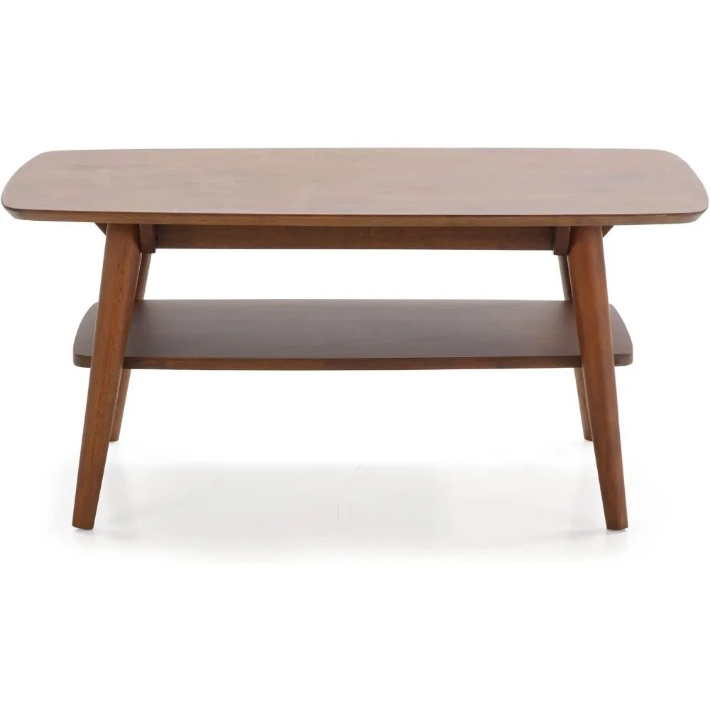 Cette table basse en bois de noyer au style moderne est à la fois élégante et fonctionnelle. Son design minimaliste et son étagère de rangement inférieure en font le meuble idéal pour votre salon.